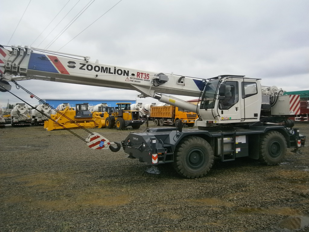 Внедорожный автокран ZOOMLION RT35 представляет собой полноценная вращающая платформа, телескопическая стрела, гидравлическая пропорционального регулирования четыре аутригеров, внедорожные шины. Компания использует импортные ведущие мосты, использует уникальные специализированные шасси собственного производства, отличная широкая кабина крановщика, привод 4x4.